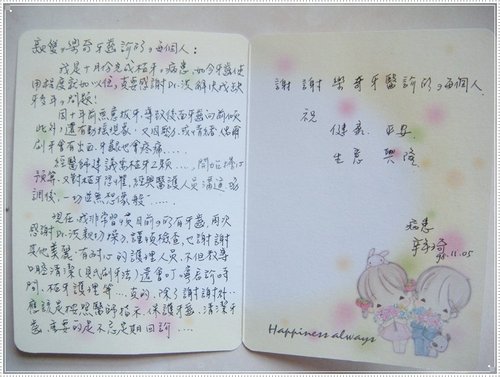 境的優美及消毒完善, 術後也主動的願意合照及寫卡片, 其實她身邊有站我~ 不過最近
