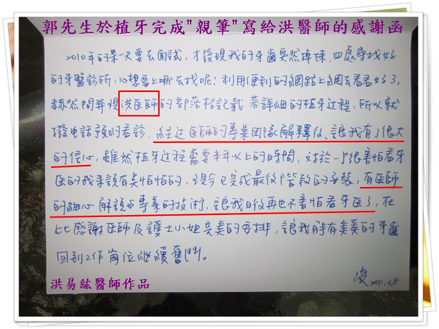洪醫師醫術服務為她讚許, 我的服務也受她認同, 真是太開心了!!』